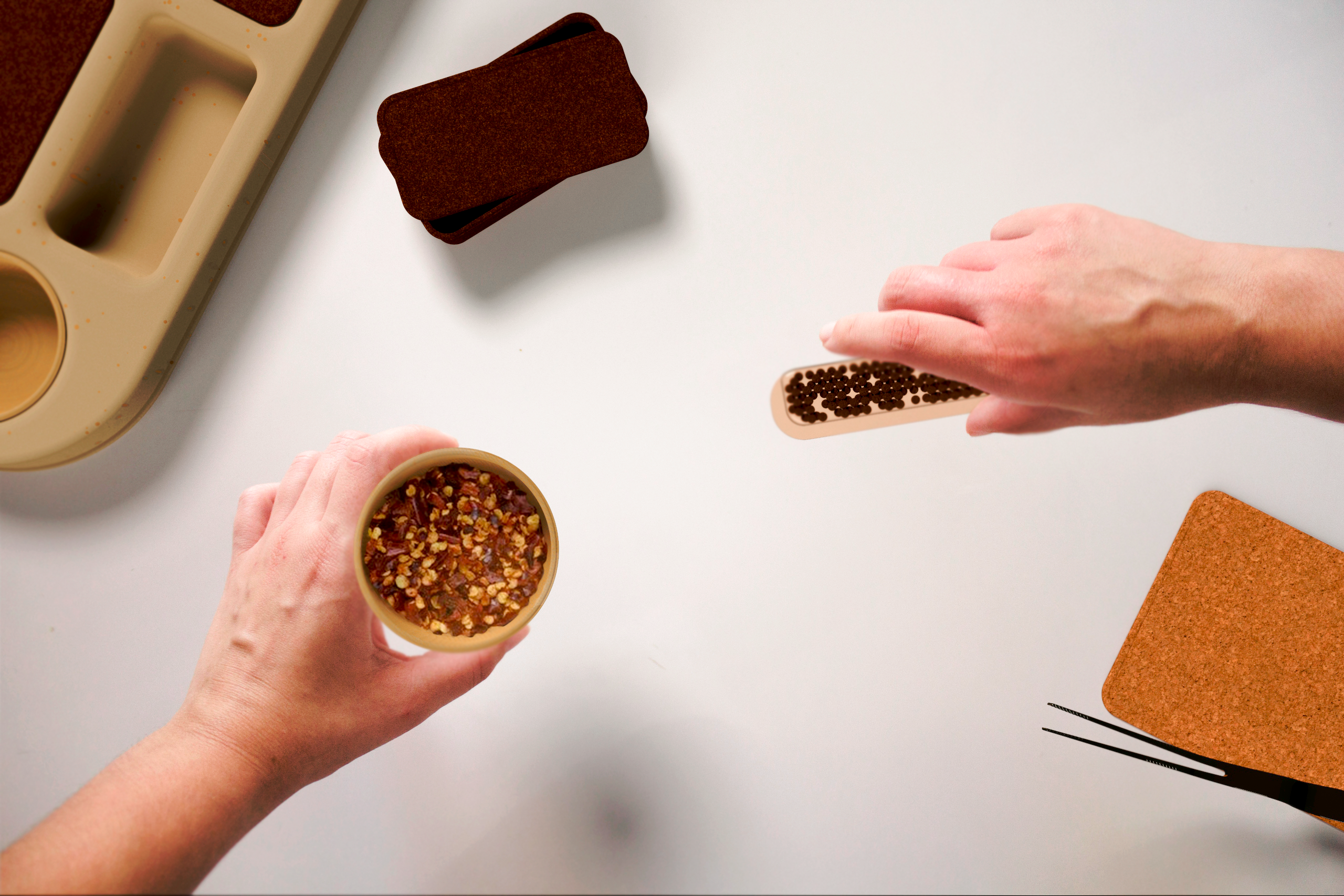 ‘Pinsula’ is a versatile, ergonomic culinary tool designed to merge the precision of tweezers with the delicacy of a spatula. Created to meet the high demands of fine dining, it allows chefs and users to plate with exceptional detail and accuracy. The tool’s ergonomic shape fits comfortably in the user’s hand, with an elevated design that prevents contact with surfaces, ensuring cleanliness and avoiding contamination. Both ends are carefully shaped for optimal balance—ensuring that when the tool is used, it remains stable and controlled. The central arch serves not only as a support point but also as a grip, adapting perfectly to the natural hand position of the user.